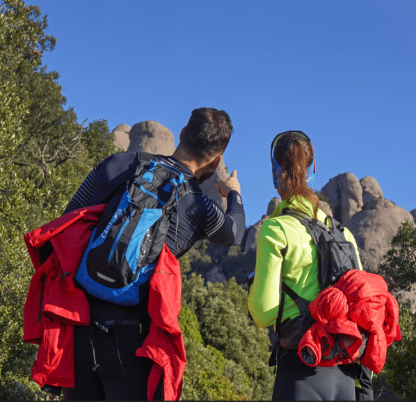 Després de pujar al voltant de 1.000 graons, passareu pel Pas dels Francesos i, us endinsareu en un frondós bosc creuant el Pla dels Ocells. Arribareu a una bifurcació, on us trobareu el Camí Nou de Sant Jeroni que ve del funicular de Sant Joan. Seguireu per l’altra sendera per a continuar ascendint.