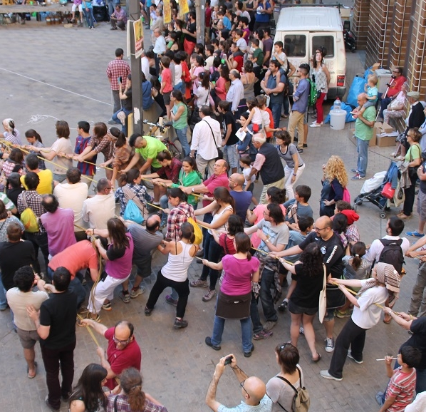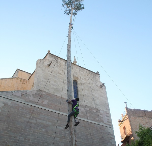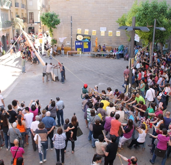 Pas 4: Plantada del Maig al mig de la plaça a base de força humana i amb l’ajuda només de tensors i forques preparades per a l’ocasió.