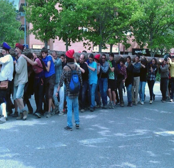 Pas 2: Trasllat del Maig des del lloc on és tallat fins a la plaça del poble carregant-lo a força de braços.