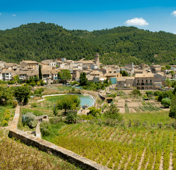 Situat entre muntanyes, en el congost que excava el riu Sant Pere, i sota les faldes d’antigues vinyes, trobem el poble de Copons. Límit de l’Alta Anoia, el seu castell apareixerà per primera vegada a mitjan segle X però ja des del segle XIII quedarà vinculat a la monarquia. I aquest serà l’element que permetrà desenvolupar un petit poble agrícola que al segle XIV disposa d’un dels mercats de la comarca.