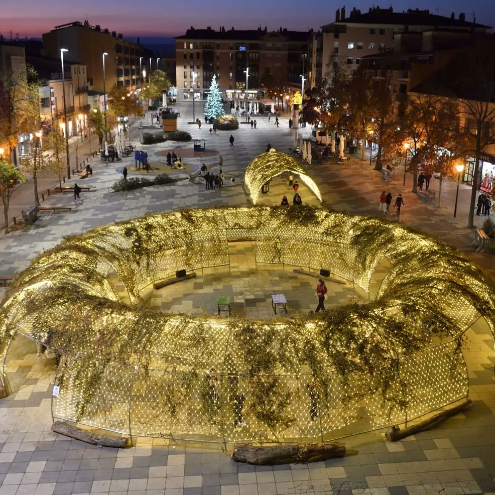 El niu, aquest any cobert de teixit fet a la ciutat, serà un espai participatiu on cada dia hi passaran coses com el Calendari d’Advent de la ciutat, on cada vespre, a les 19h, des del dia 1 fins al 24 de desembre, els fanalers encendran les bombetes que marcaran el compte enrere per arribar al Nadal tot explicant històries de màgia i llum.