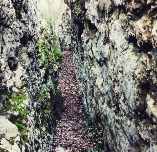 Els Esgavellats deu el seu nom al fet que aquesta part de la serralada està com trencada, “esgavellada”. És un lloc ideal, una mica “laberíntic”, per jugar a fet i amagar.