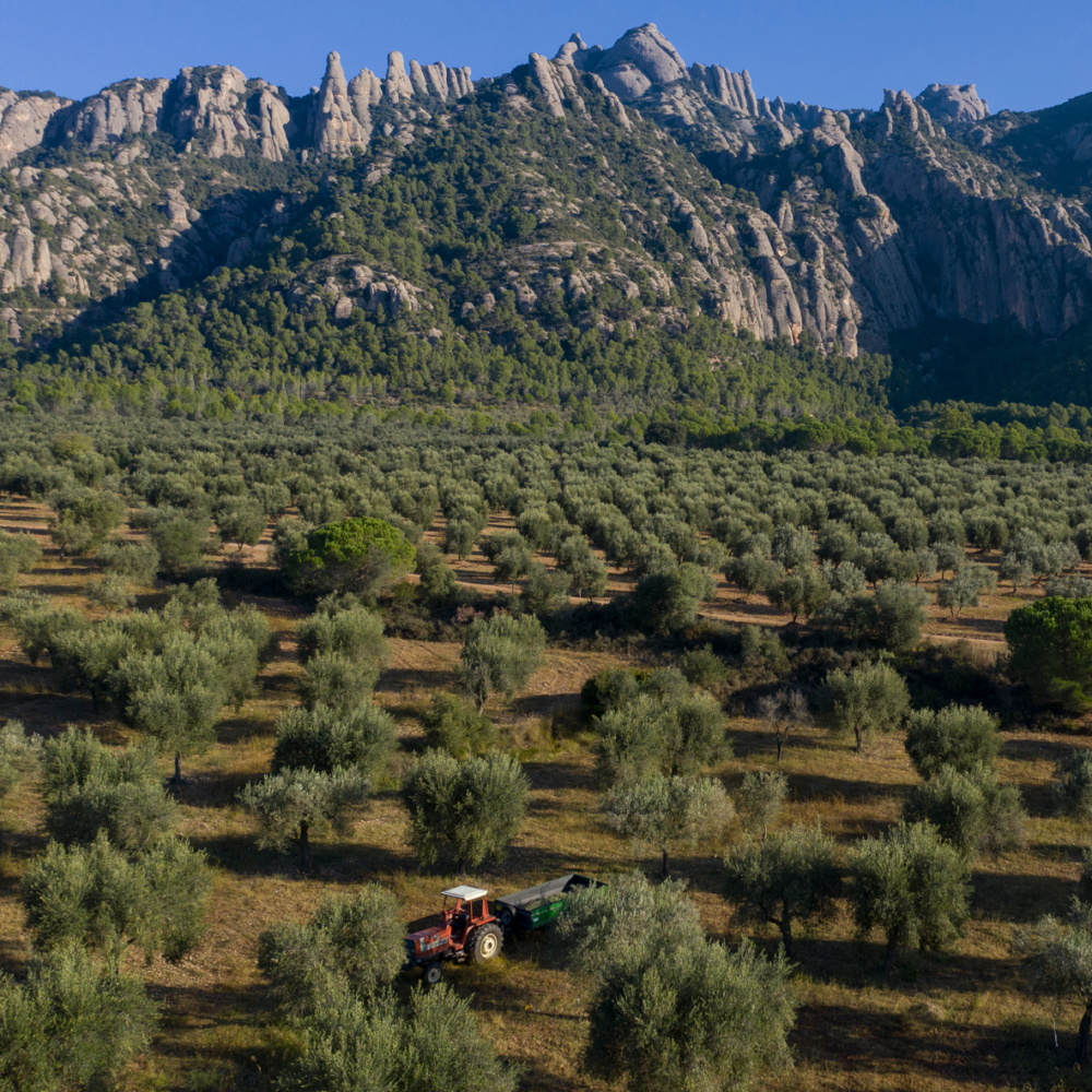 Amb el teló de fons majestuós de la muntanya màgica de Montserrat, els paisatges d’oliveres del Bruc són una postal de tranquil·litat i serenitat. La combinació de verds intensos i la presència imponent de la muntanya crea una atmosfera única.