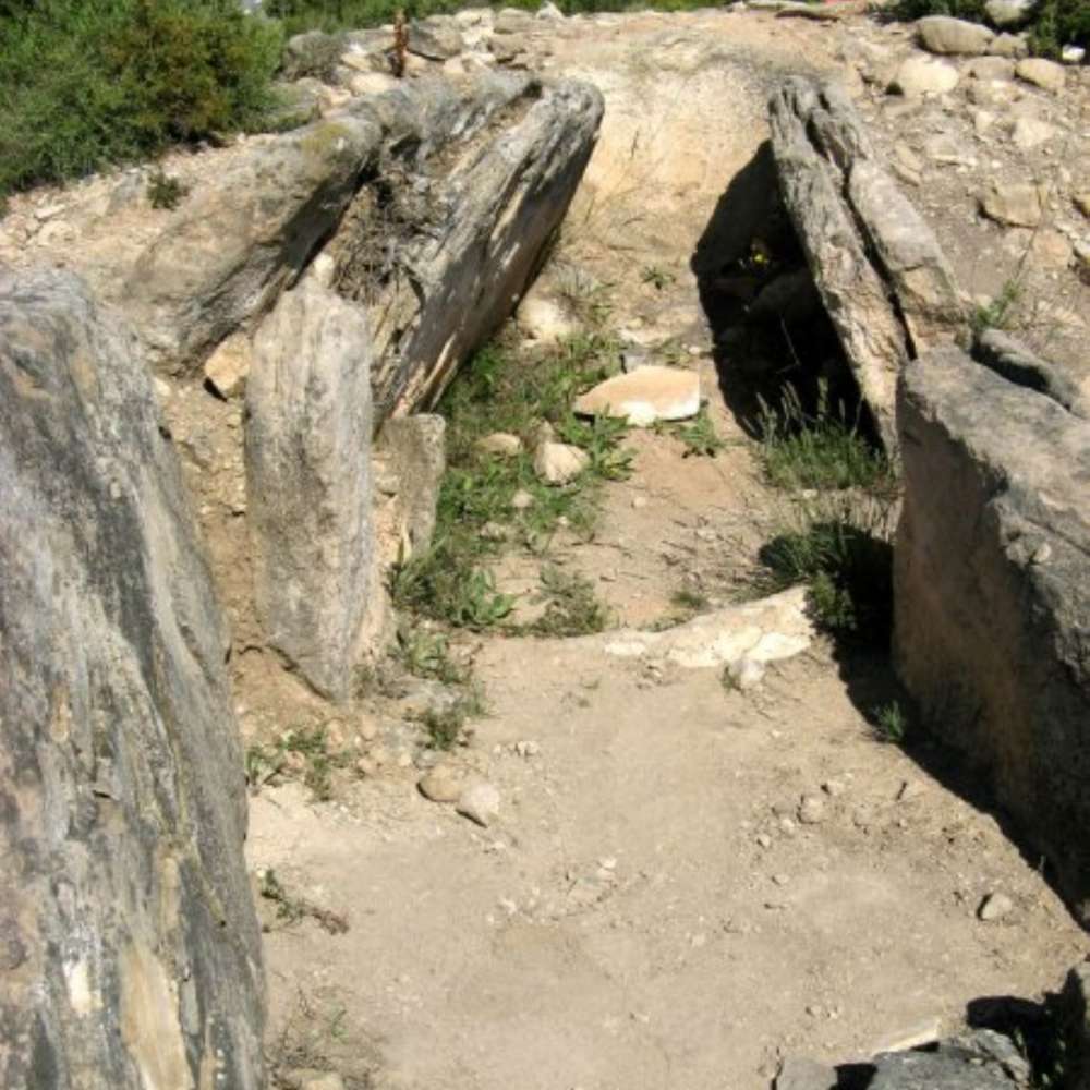 3) SEPULCRE DE PLANS DE FERRAN (Argençola): un sepulcre del tipus petit quadrangular, del període Bronze mitja-antic, és a dir de principi del segon mil·leni aC. En les seves proximitats hi ha uns relleus a la roca identificats com l’arbre de la vida.