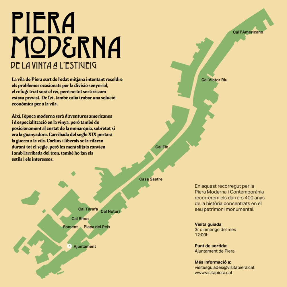 En aquest recorregut per la Piera Moderna i Contemporània recorrerem els darrers 400 anys de la història concentrats en el seu patrimoni monumental.