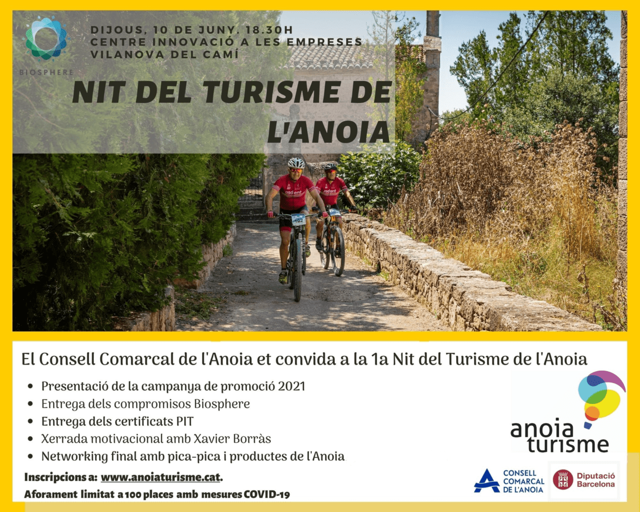Durante el acto, se presentará la campaña de promoción del turismo en la Anoia del 2021, también tendrá lugar la entrega de los compromisos por el turismo sostenible ‘Biosphere’ para las empresas e instituciones que recibieron este sello y se hará la entrega de los certificados PIT. Como ingrediente motivacional, habrá una charla con lo coach Xavier Borràs, y para acabar los asistentes podrán hacer networking disfrutando de una degustación de productos de la Anoia.