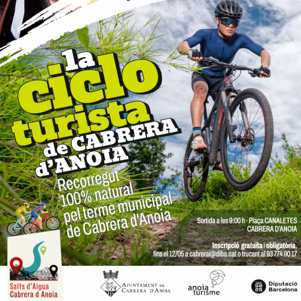 A las 9:00h de la mañana se dará el pistoletazo de salida de la carrera cicloturista en la Plaza Canaletes, la cual contará con un recorrido por el territorio de Cabrera de Anoia, pasando por los mejores espacios naturales de alrededor. El recorrido será de 10km, está pensado para ser una ruta dirigida a todos los públicos con dificultad leve pero recomendamos que los más pequeños vayan acompañados de un adulto durante todo el recorrido. El recorrido será el siguiente, salida desde la plaza de Canaletes hacia el Salt dels Capellans hasta llegar a la Bleda y el Corriol de Can Fuster, seguidamente se pasará por el Salto de la Mala Mujer, Mas d’en Feixes, Mas de la Bleda, Els Tapiots, Guiza nueva y vuelta hacia Canaletes.