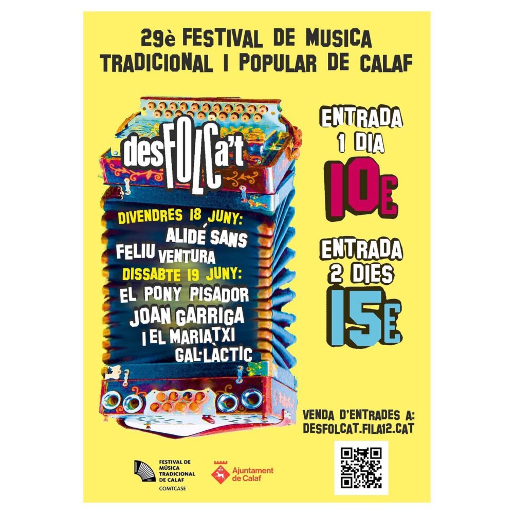 Durante el fin de semana del DesFOLCa’t, Calaf se convierte en la capital catalana de la música popular y tradicional, con este evento que reúne a los mejores grupos folk. La programación combina grupos conocidos y de otros emergentes de Catalunya y otros países del mundo.