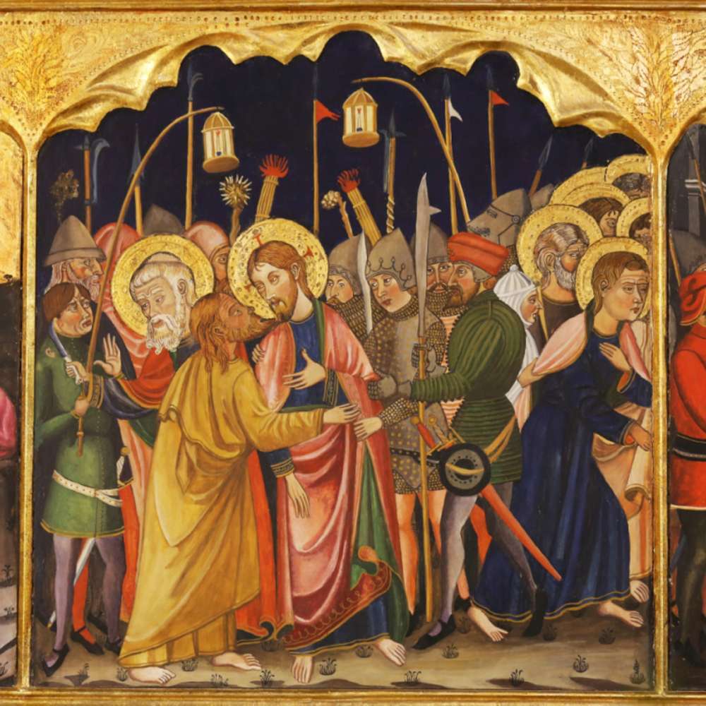 Las escenas de dolor son: en el bancal y de izquierda a derecha, la Oración en el huerto de Getsemaní, la Traición de Judas, la Acusación de Jesús por los judíos, la Flagelación, el Vía Crucis y la Piedad o descendimiento de la cruz, y la Crucifixión en la parte superior del cuerpo central.