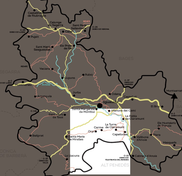 El Espacio Natural de la Riera de Carme (también dicha de Miralles) resigue el curso fluvial que, procedente de Miralles, atraviesa los términos de Orpí, Carme y la Torre de Claramunt hasta que desemboca al rio Anoia en su paso por La Pobla de Claramunt.